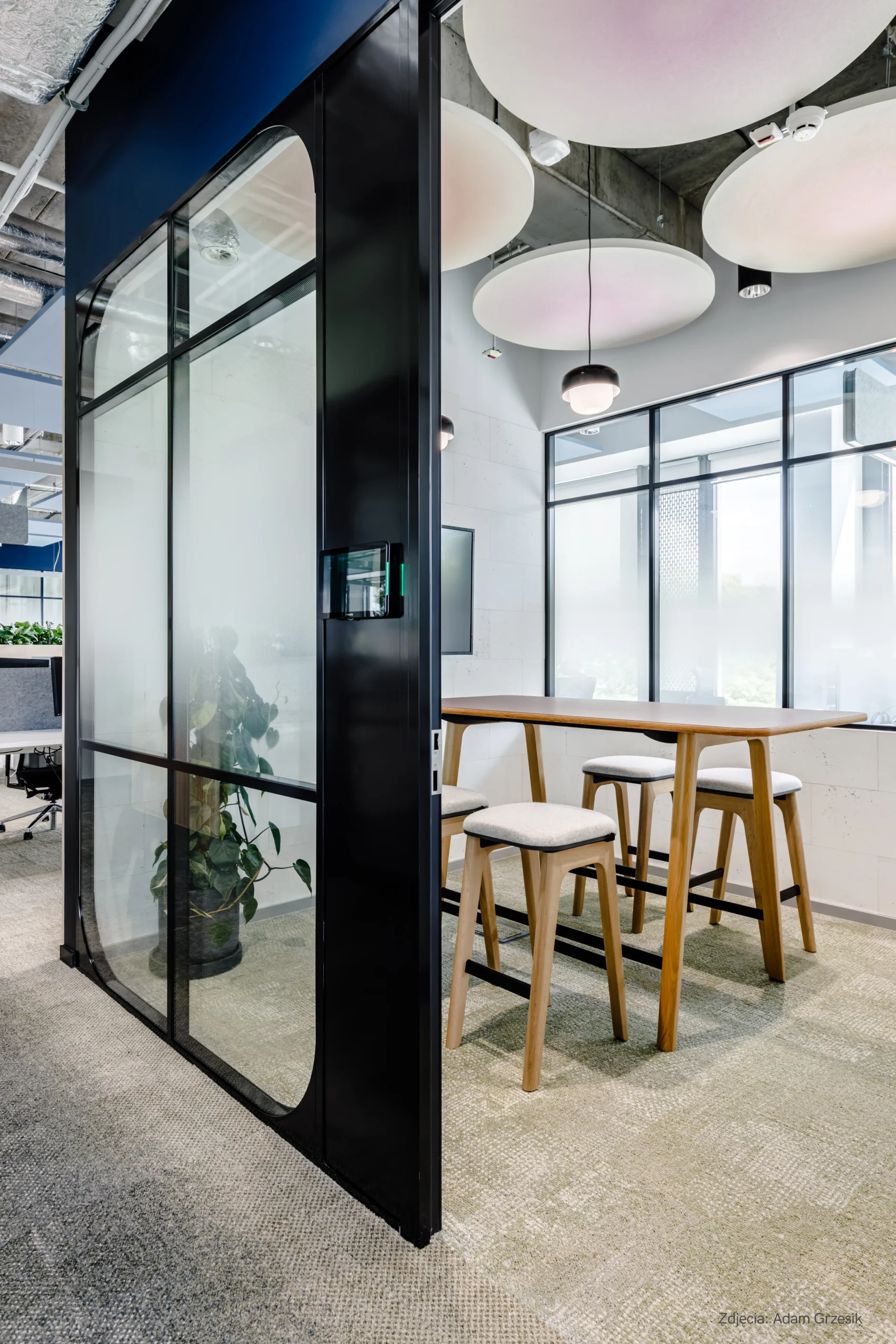 Die mit Sprossen ausgestatteten SILENCE LOFT Trennwände sehen in industriellen Innenräumen nicht nur schön aus, sondern haben einen positiven Effekt auf die Verbesserung der Akustik. Je nach Art der Füllung können sie eine Schalldämmung von Rw 53 dB erreichen.