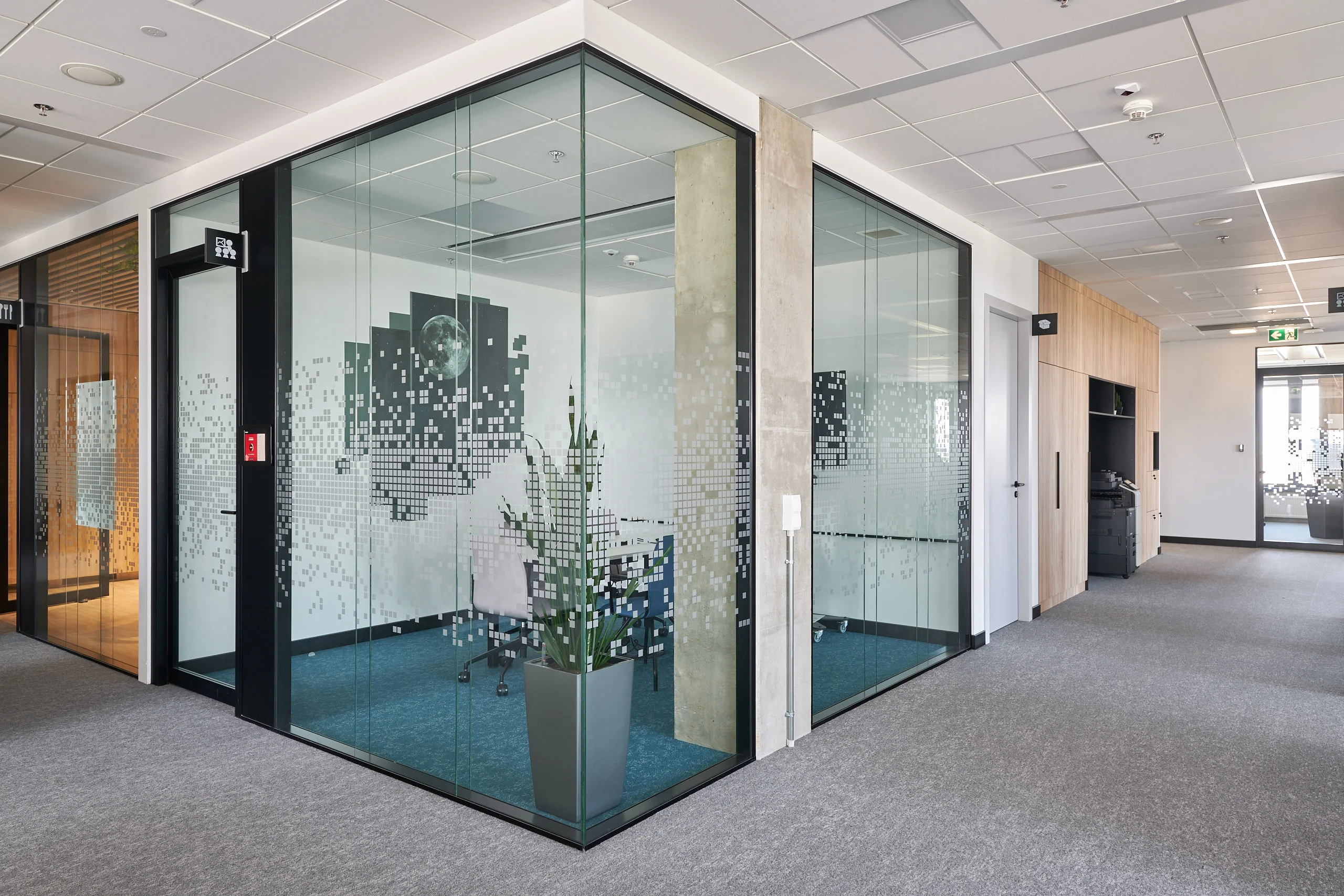 Die Trennwände ULTRA SILENCE eignen sich ideal für Innenräume, die Ästhetik und Ruhe harmonisch miteinander verbinden und ein intensives Arbeiten oder Entspannen ohne Lärm ermöglichen. Die Doppelverglasung der ULTRA SILENCE Trennwände erhöht die Schalldämmung erheblich und erreicht Rw 52 dB, weshalb sie eine ideale Wahl für multifunktionale Räume ist, z.B. wenn ein Büro mit einer Produktionshalle kombiniert wird.