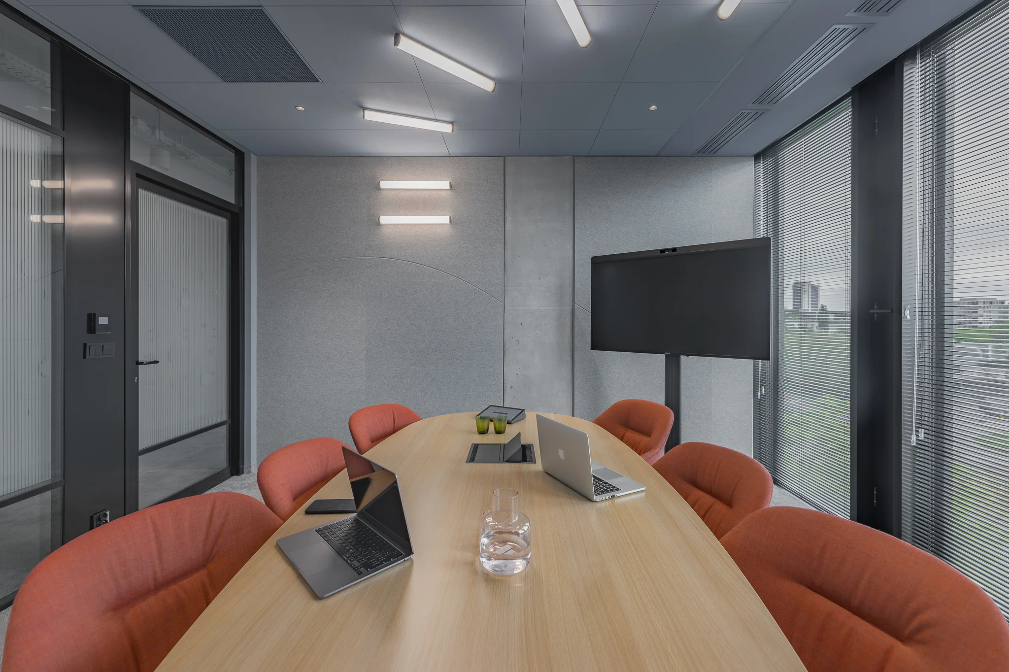 In diesem Büro wurden unsere Trennwände im SILENCE LOFT-System, gebogene SILENCE LOFT-Glaswände, STANDARD-Türen sowie zweiflügelige automatische Türen eingesetzt. Dadurch erhielt das Büro eine klare Struktur und eine gute Akustik.
