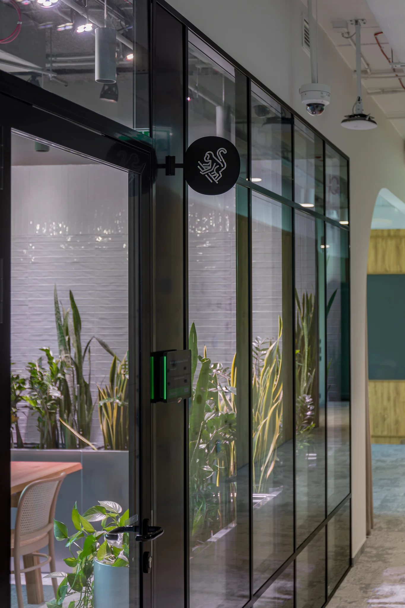 Wir haben die SILENCE LOFT-Glaswände, gebogenen Wände im SILENCE LOFT-System sowie die STANDARD-Türen und die zweiflügeligen automatischen Türen angepasst und montiert.