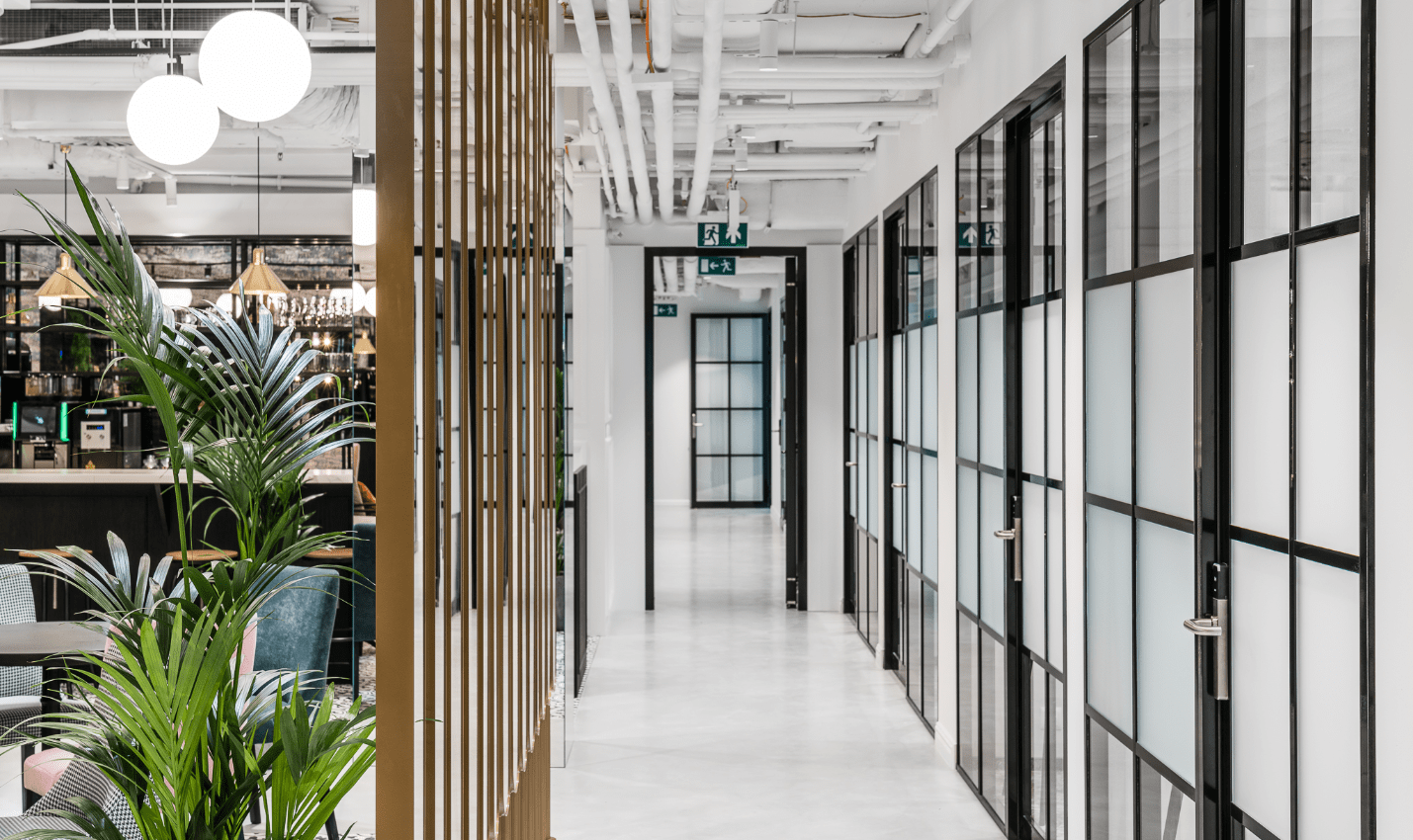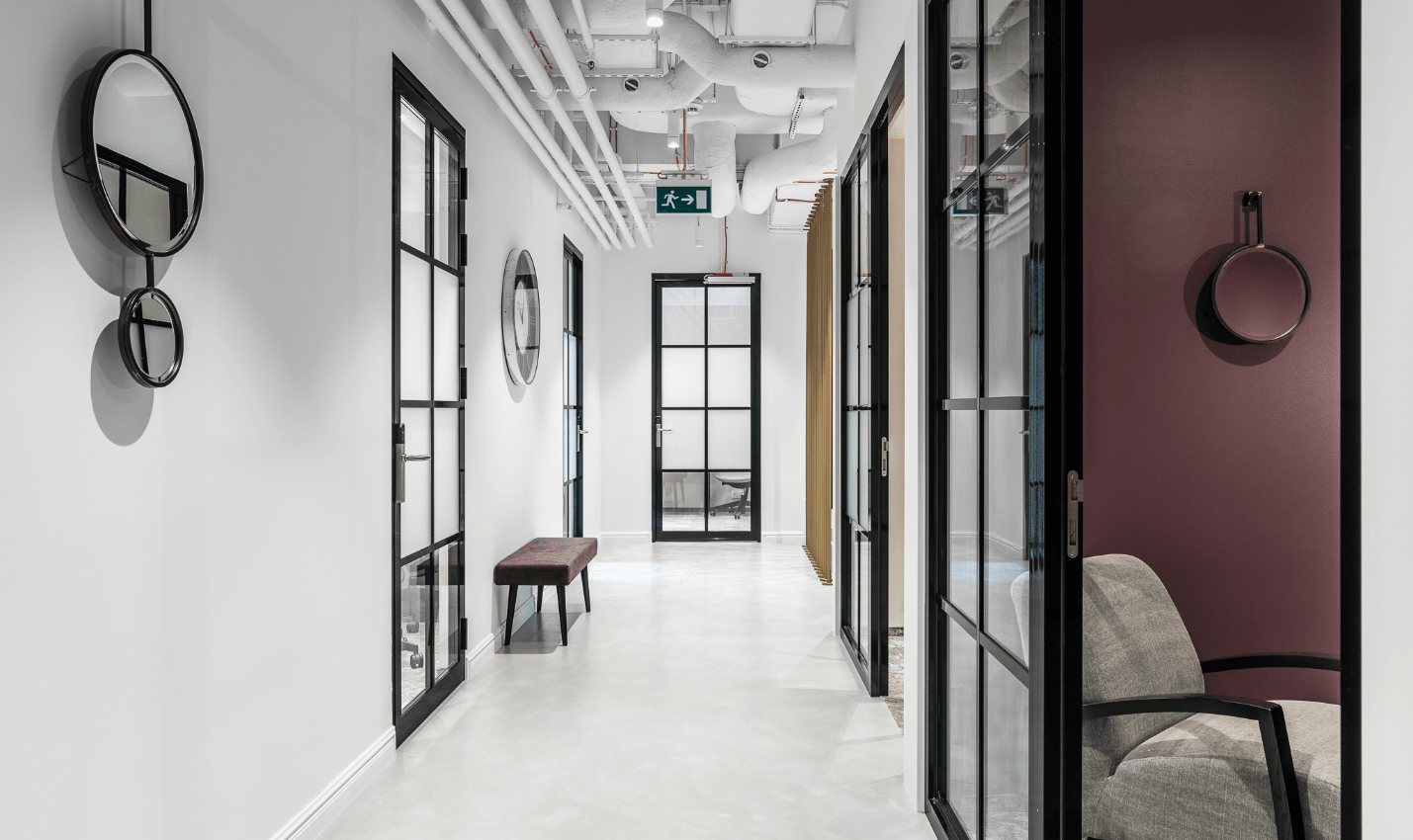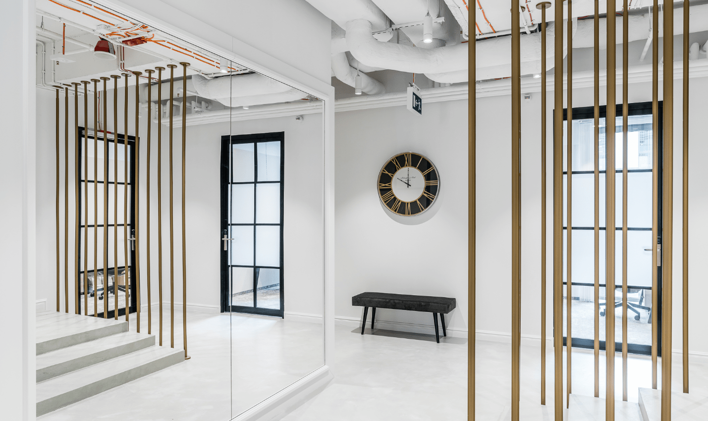Das Projekt für Solution Rent zeichnete sich durch Glaswände und -türen aus, die den offenen Charakter des Innenraums betonten und einen freien Lichtdurchfluss gewährleisteten. Die Loft-Konstruktionen mit Sprossen verleihen dem Raum einen besonderen Stil, der sich harmonisch in die anderen Elemente des Designs einfügt. Die durchdachte Farbgestaltung und die Beachtung jedes Details machten den Innenraum sowohl modern und elegant als auch sehr funktional.
