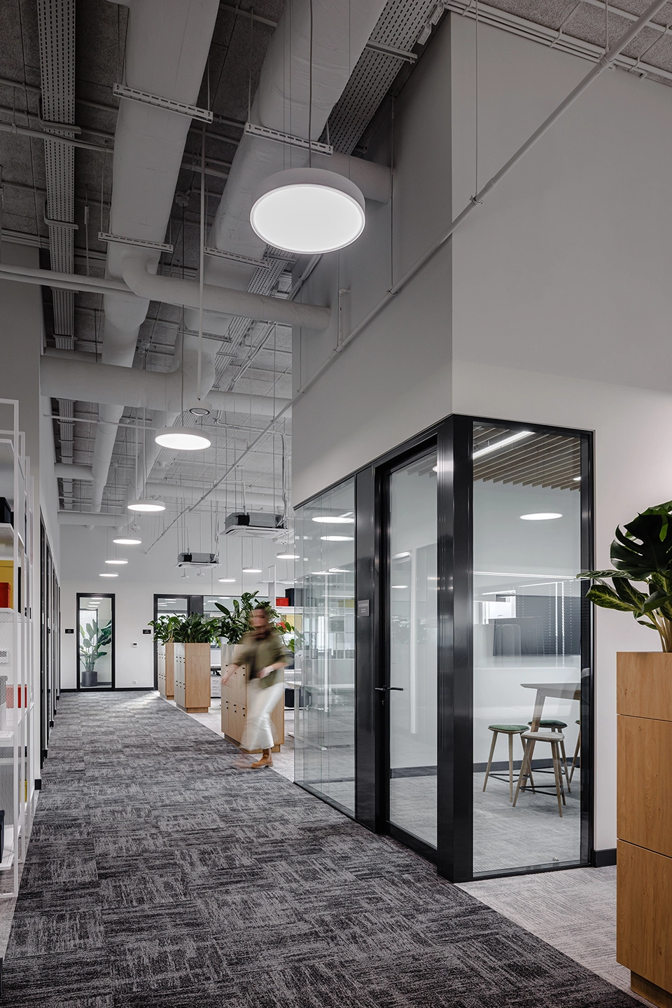 CreoConcept lieferte Lösungen, die diese Anforderungen vereinen. Im Projekt wurden ULTRA SILENCE-Wände, feuerfeste ULTRA SILENCE FS-Trennwände sowie sprossengeteilte ULTRA SILENCE LOFT FS-Trennwände mit hoher Feuerwiderstandsklasse eingesetzt. Ergänzt wurde die Ausstattung durch STANDARD-Innentüren.