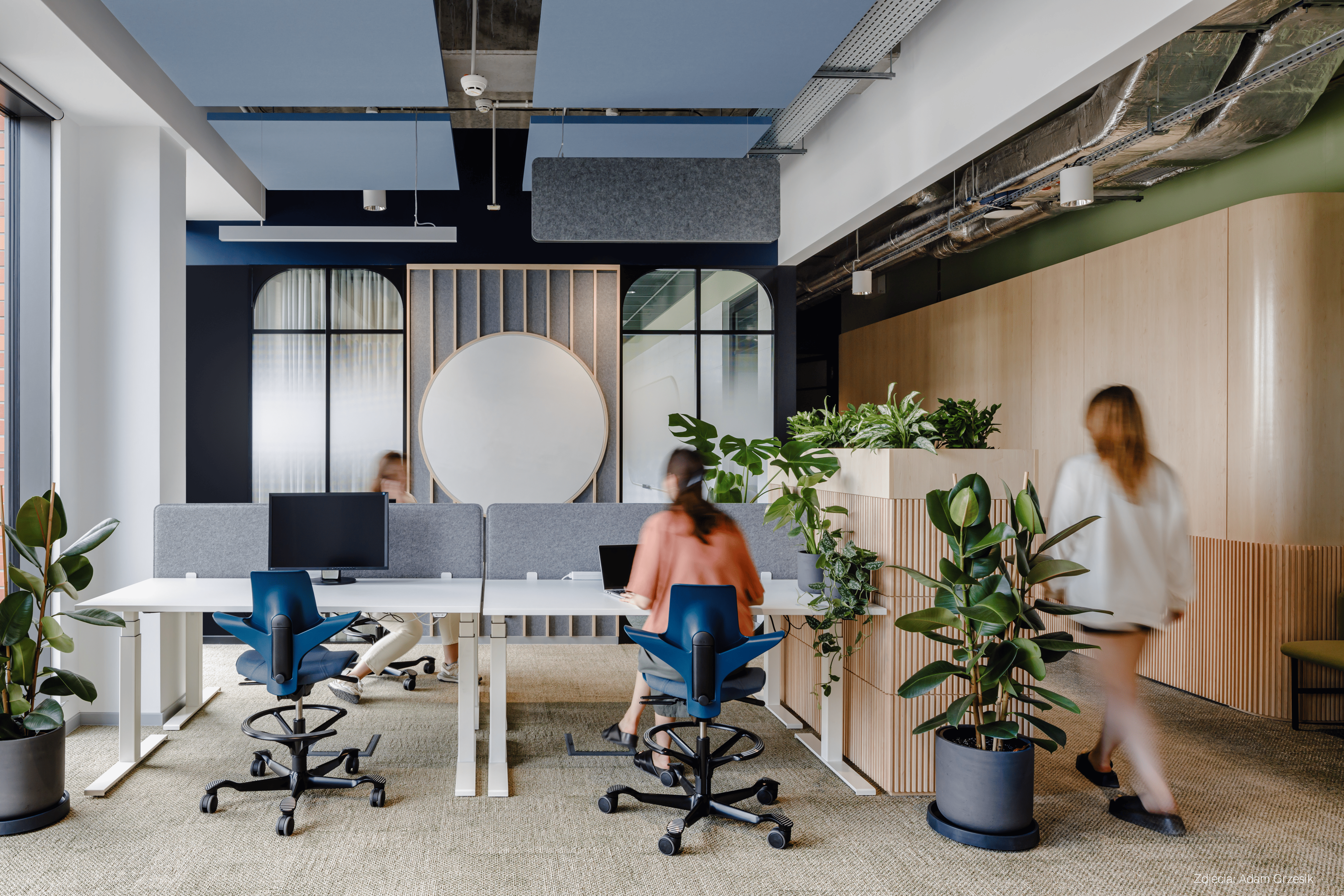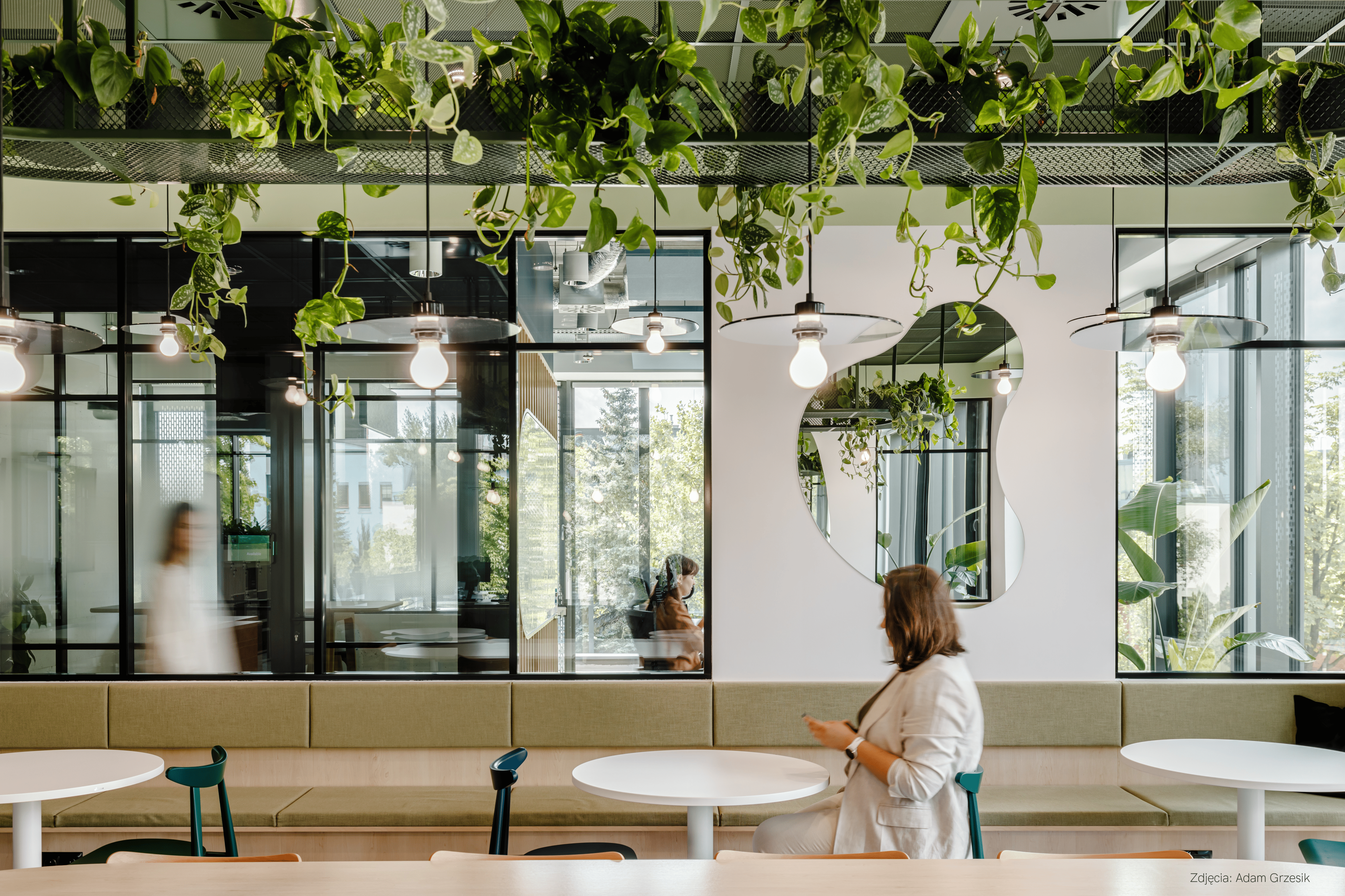 Dank des Einsatzes einer großen Anzahl von Glaswänden kann das natürliche Licht frei eindringen, was für die Nutzer des Büros von Vorteil ist. Darüber hinaus passen unsere Glassysteme perfekt zu den Pflanzen, die die offenen Flächen, die Besprechungsräume und die sozialen Bereiche dekorieren und eine harmonische und inspirierende Arbeitsatmosphäre schaffen.