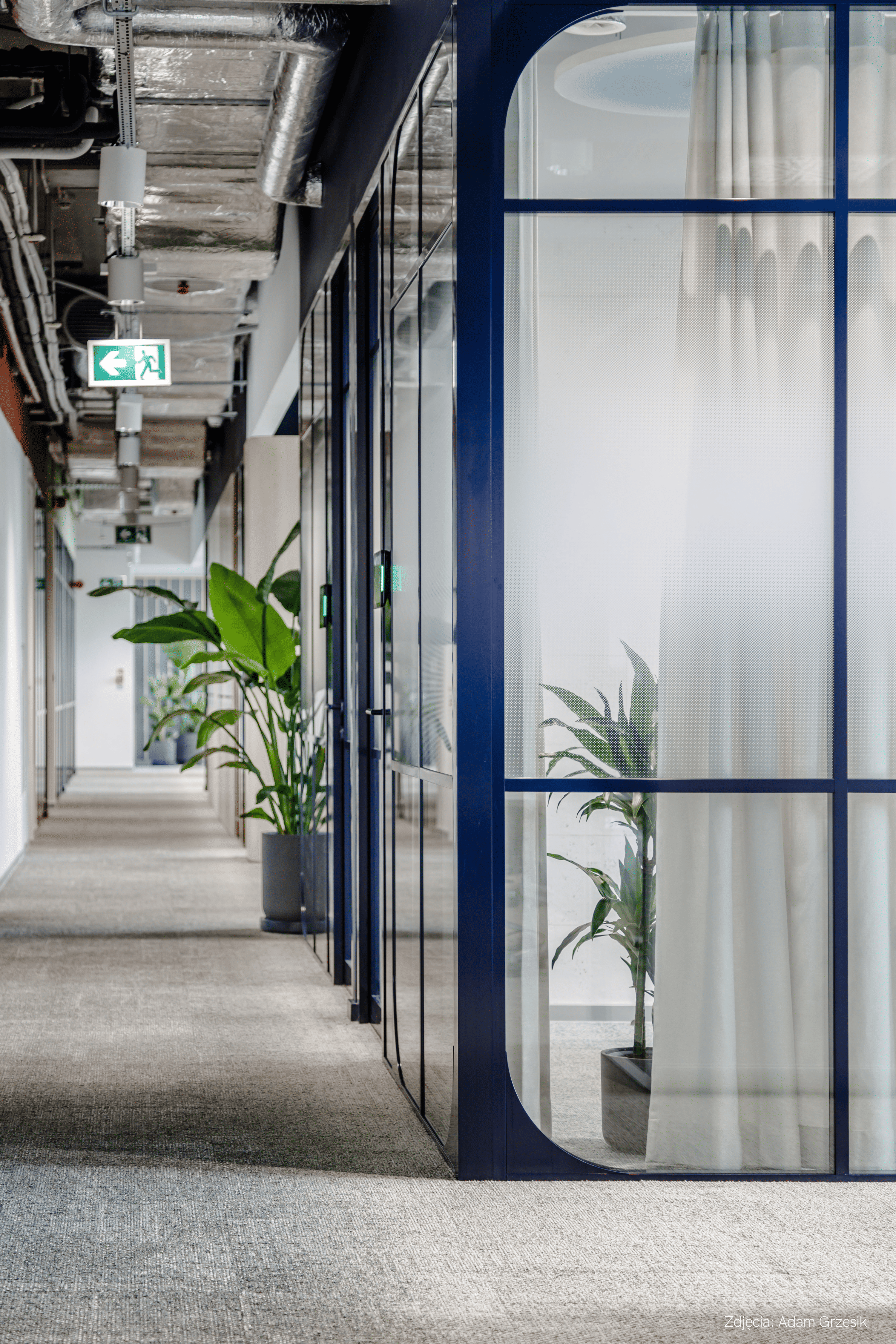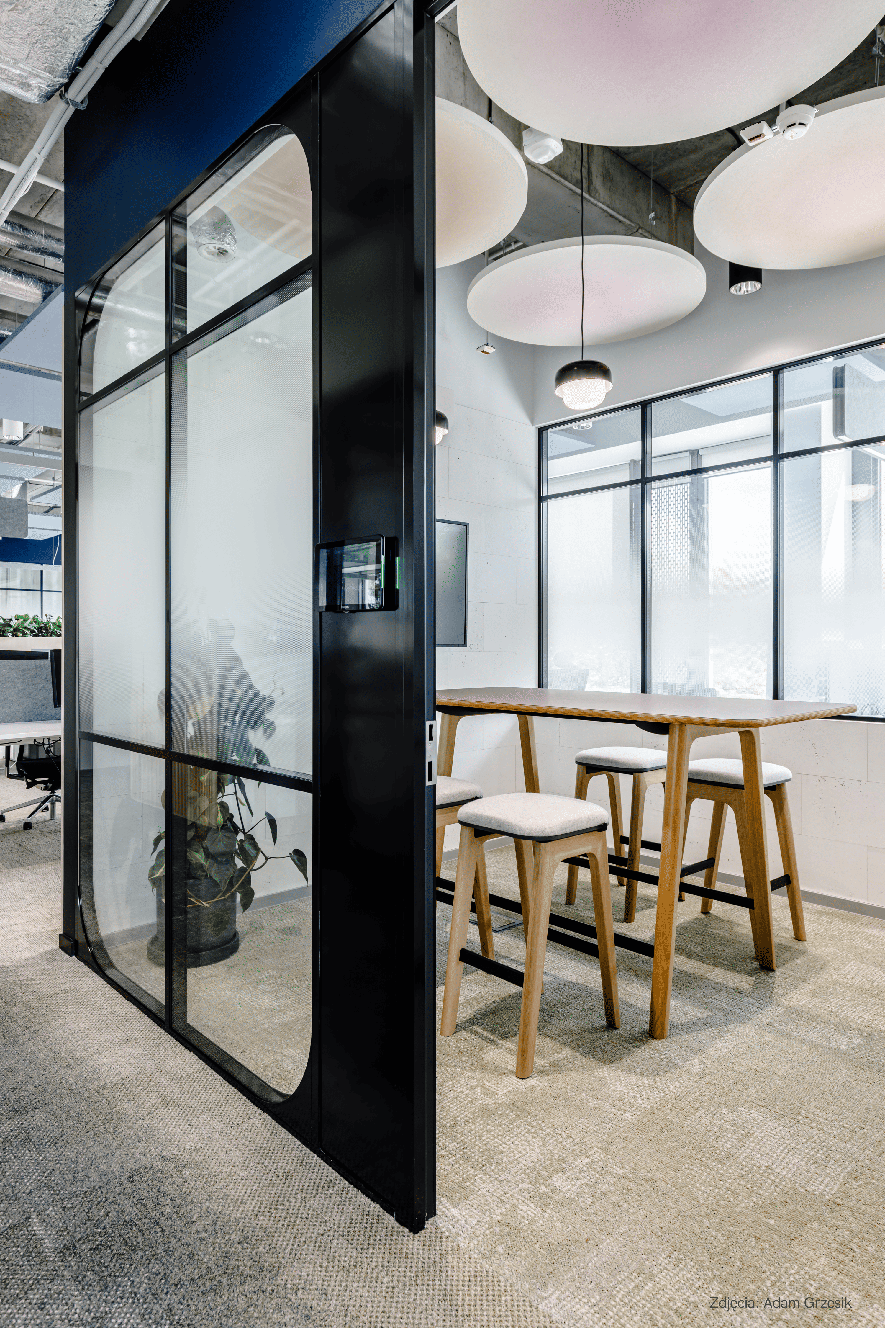 In einem Bürogebäude in Wrocław wurde eine Reihe unserer Lösungen eingesetzt, die perfekt zum modernen Charakter dieses Raums passen. Hier wurden die SILENCE LOFT und ULTRA SILENCE LOFT Systeme eingesetzt, die für eine hervorragende Akustik sorgen, sowie elegante STANDARD Türen. Besonders auffällig sind die gebogenen Kanten der Loft-Glaswände, die dem Innenraum einen einzigartigen Charakter verleihen.